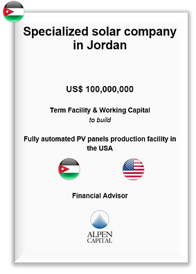 Leading the financial advisory for a Jordan-based group's establishment of a photovoltaic (PV) manufacturing facility in the US.